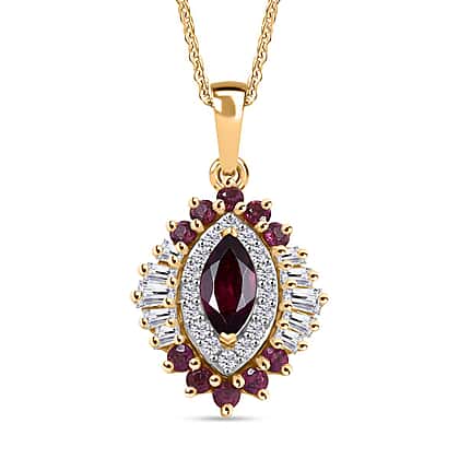 Rhodolite Garnet & Moissanite Pendant with Chain (Size 20) in 18K Vermeil Yellow Gold Plated Sterling Silver 1.77 Ct.