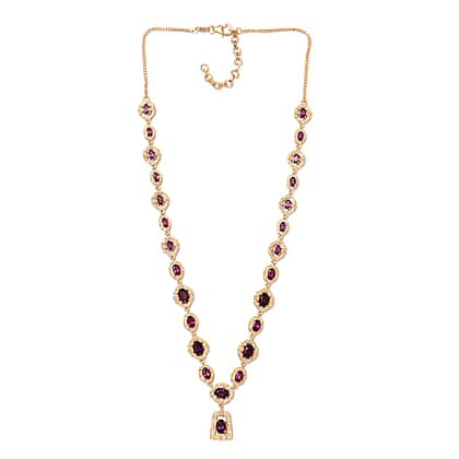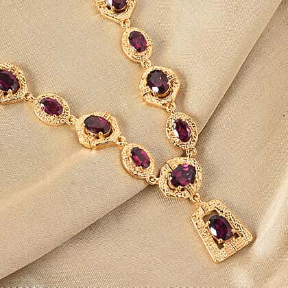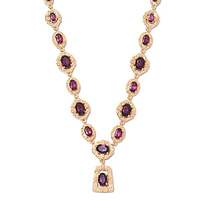 12.5 Ct. Rhodolite Garnet Necklace in 14K Gold Plated Sterling Silver 18 Inches