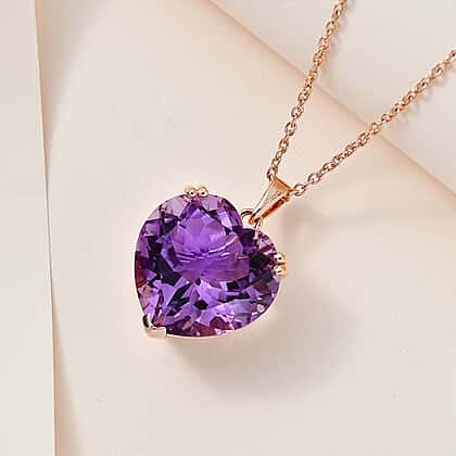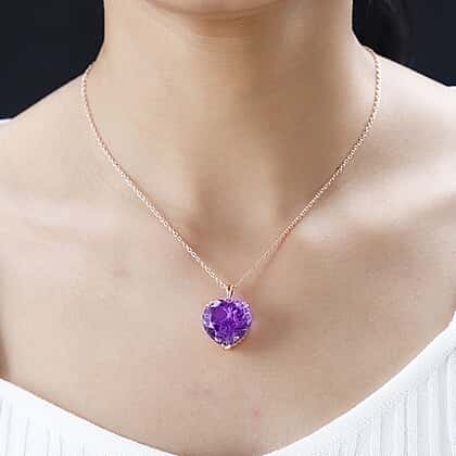 Pink Amethyst Heart Pendant with Chain (Size 20) in 18K Vermeil Rose Gold Plated Sterling Silver Wt. 6.1 Gms 15.000 Ct.