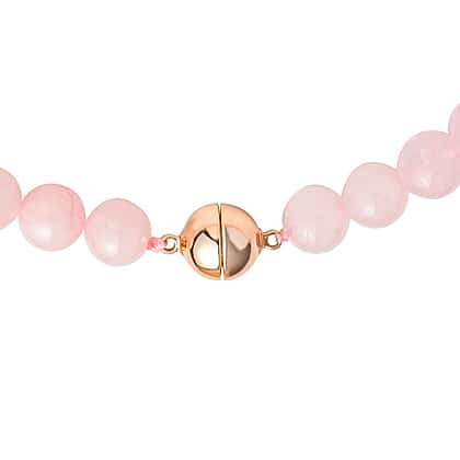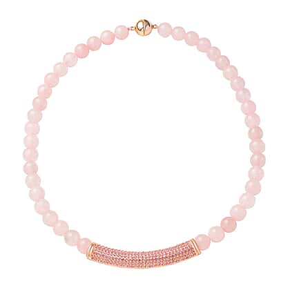 Rose Quartz and Pink Austrian Crystal Necklace (Size - 20) With Magnetic Clasp in Rose Gold Tone