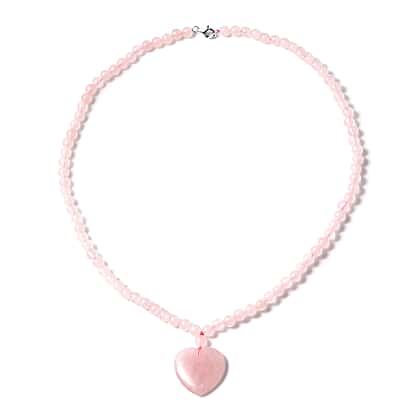 Rose Quartz Heart Necklace Size 20 in Sterling Silver