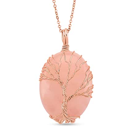Rose Quartz Oval Tree of Life Pendant (Size 20) 20.00 Ct.