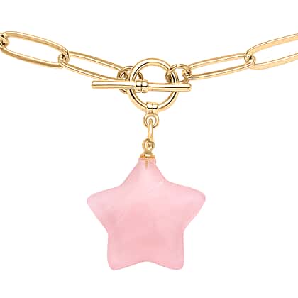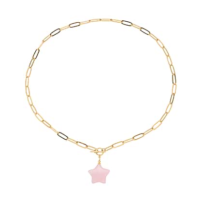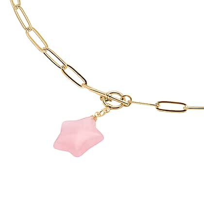 The necklace comes in a paperclip design. The chain of the necklace is created by interlocking the paperclip links together. The Rose quartz gemstone is studded on the T-bar clasp in star shape. The gemstone is a variety of quartz in pale pink, also known as Hyaline quartz. The necklace is crafted in a Yellow Gold-tone.