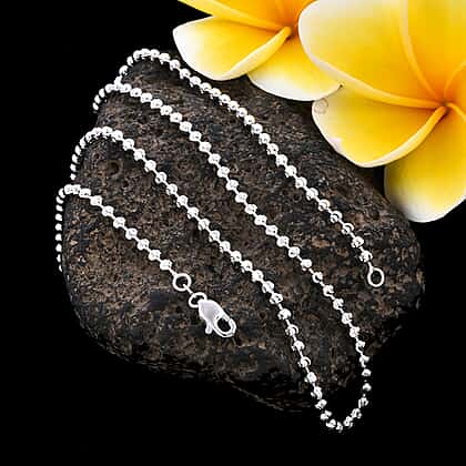 Royal Bali Collection - 9K White Gold Diamond Cut Ball Chain (Size 18), Gold wt 8.30 Gms