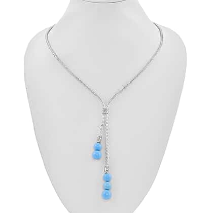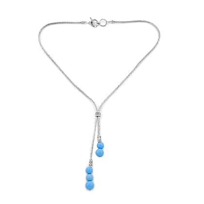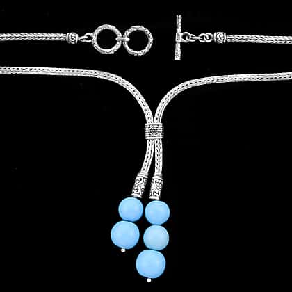 Royal Bali Collection - Arizona Sleeping Beauty Turquoise Adjustable Lariat Necklace (Size 22) in Sterling Silver 32.50 Ct, Silver wt 24.30 Gms
