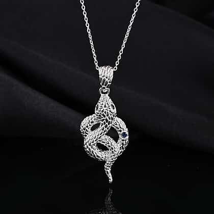 Royal Bali Collection - Blue Sapphire & Black Spinel Sterling Silver Pendant with Chain (Size 20) & Lobster Clasp