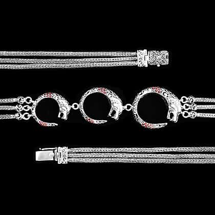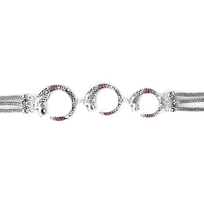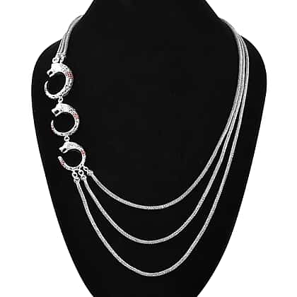 Royal Bali Collection 2.19 Ct Mozambique Garnet Three Strand Panther Necklace in Sterling Silver 27 Inch