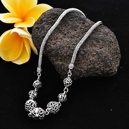 Royal Bali Bead Tulang Naga Necklace in Sterling Silver 23 Grams 17 Inch