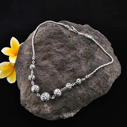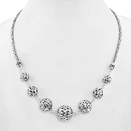Royal Bali Collection - Sterling Silver Bead Tulang Naga Necklace (Size 18) with T-Bar Clasp, Silver wt 36.80 Gms