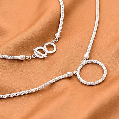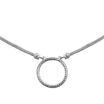 Royal Bali Collection - Sterling Silver Circle Necklace (Size - 20) with T-Bar Clasp, Silver Wt. 18 Gms