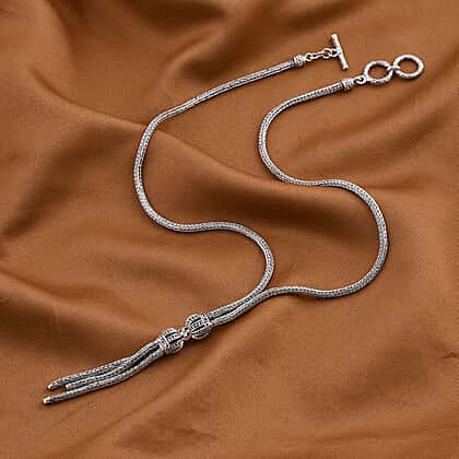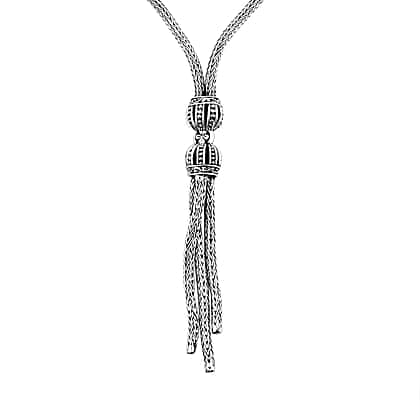 Step up your fashion game with the mesmerising beauty of our Royal Bali Collection Necklace. Fashioned from the purest Sterling Silver, it is a reflection of the Balinese cultural mosaic. The intricate patterns, picked from Bali's ancient artistry, transform this necklace into a masterpiece that commands attention. Adorn yourself with the lariat-style necklace, where every silver thread weaves a story of art and passion.