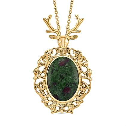 Ruby Quartzite Solitaire Pendant with Chain (Size 20-2 Ext) in Yellow Gold Tone 40.00 Ct.