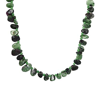 Ruby Zoisite, Green Jade Necklace (Size - 20), 192.40 ct.