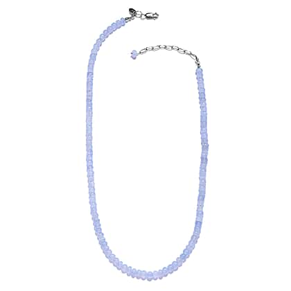 Sajen Silver Gem Vitality Collection - Blue Chalcedony Beads Necklace (Size - 20 with Extender) in Rhodium Overlay Sterling Silver 80.00 Ct.