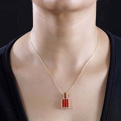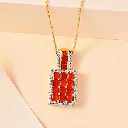 Salamanca Fire Opal & Zircon Pendant with Chain (Size 20) in 18K Vermeil Yellow Gold Plated Sterling Silver 2.35 Ct.