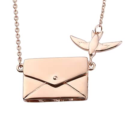 Secret Message Envelope Necklace with Bird in Rose Gold Plated Silver Size 20 Inch