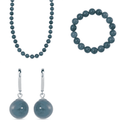Set of 3 Natural Type A Olmec Jadeite Jade Drop Earrings, Bracelet and Necklace with Magnetic Clasp in Rhodium Overlay Sterling Silver