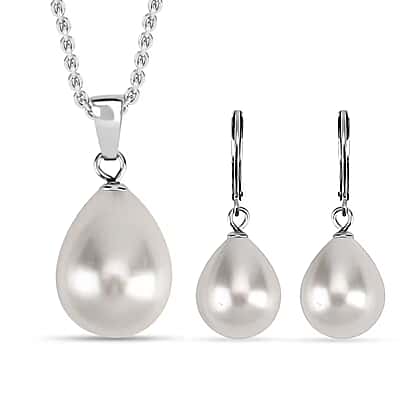 Bring oceanic beauty into everyday styling with this matching white shell pearl pendant and earring set. The smooth teardrop pearls in silver-tone settings create a clean and graceful finish that feels easy to wear and simple to style. The pendant is paired with a classic chain, while the earrings offer gentle movement and a stunning shape. This coordinated set keeps styling cohesive without needing separate choices, making it a thoughtful option for gifting or refreshing everyday pieces with something understated and beautifully aligned.
