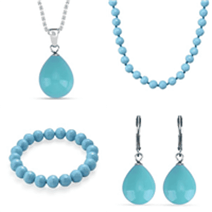 Shell Pearl Essentials - Sleeping Beauty Turquoise Colour Shell Pearl Faceted Necklace, Bracelet, Earrings and Pendant with Chain