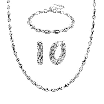 Silver Waves Christmas Gift Collection - Mariner Bracelet (Size - 7 - 2 Ext), Necklace (Size - 16 - 2 Ext) with Lobster Clasps & Pebble Earrings in Silver Tone Stainless Steel