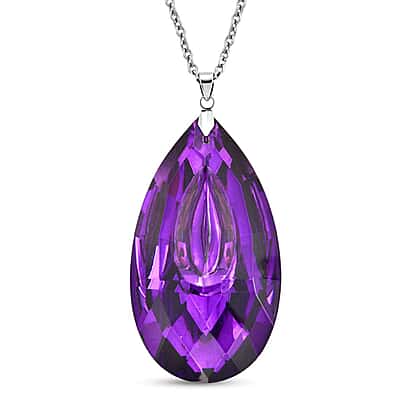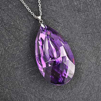 Simulated Amethyst Tear Drop Pendant with Chain (Size 24)