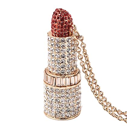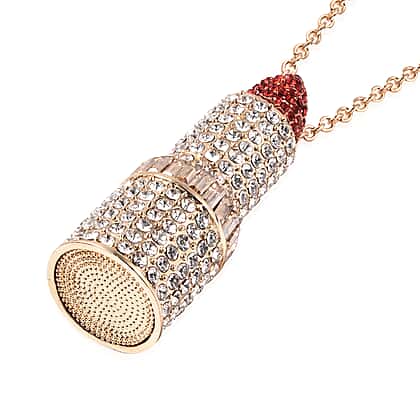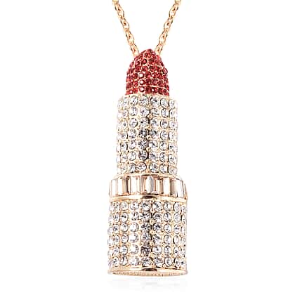 Simulated Champagne, Red and White Austrian Crystal Lipstick Pendant with Chain (Size 30 with 3 inch Extender) in Yellow Gold Tone