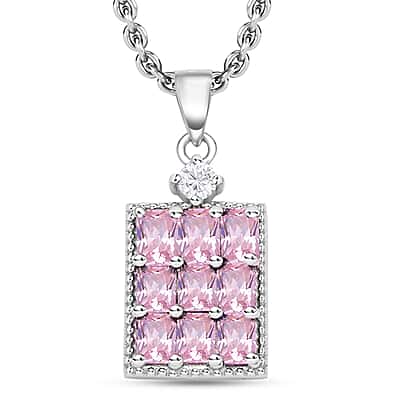 Simulated Diamond and Pink Cubic Zirconia Pendant with Stainless Chain (Size - 20 ) in Rhodium Overlay Sterling Silver.
