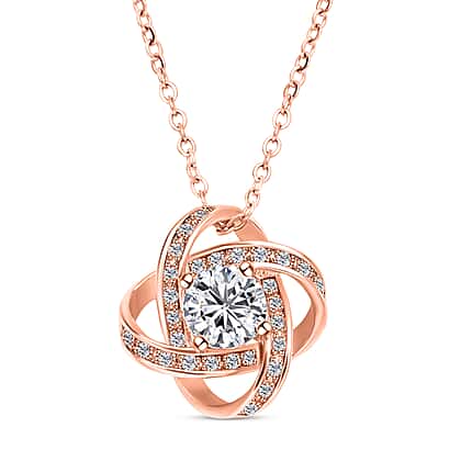 Simulated Diamond Knot Pendant With Chain Size 20 With 2 Inch Extender in Rose Gold Tone