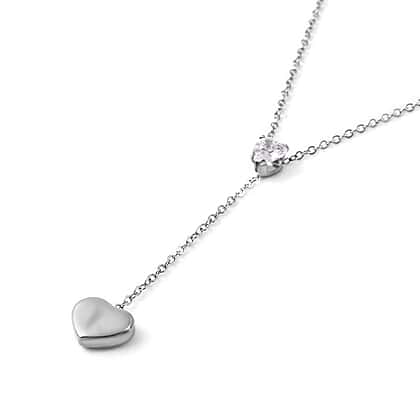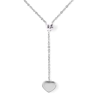 Simulated Diamond Lariat Heart Necklace (Size 17 with 2 inch Extender) in Stainless Steel
