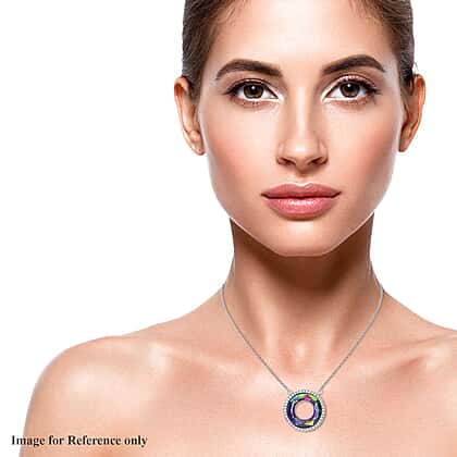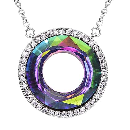 Simulated Mystic Topaz and Simulated Diamond Circle Necklace (Size - 20 With 2 Inch Extender) in Silver Tone