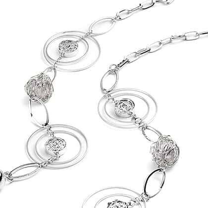 Simulated Pearl Necklace (Size 40) in Silver Tone