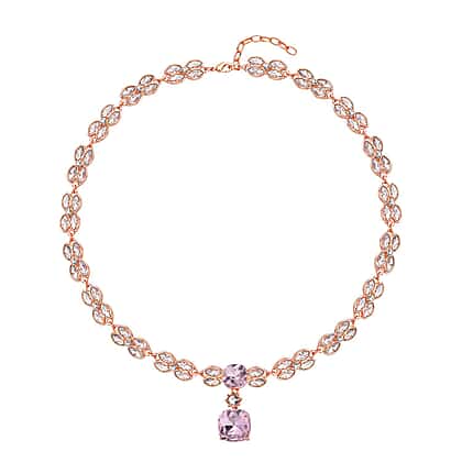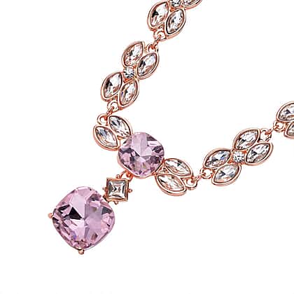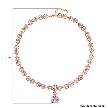 Simulated Pink Sapphire, Simulated Diamond and White Austrian Crystal Necklace (Size - 20 - 2 Inch Ext.) in Rose Gold Tone