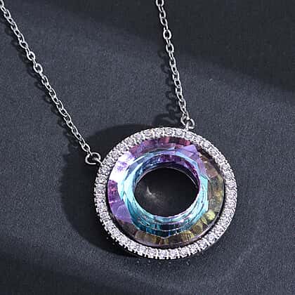Simulated Purple AB Crystal and Simulated Diamond Circle Necklace (Size - 20 With 2 Inch Extender) in Silver Tone
