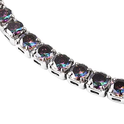 Simulated Rainbow Multi Colour Gemstone Tennis Necklace (Size 17)