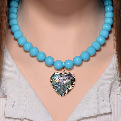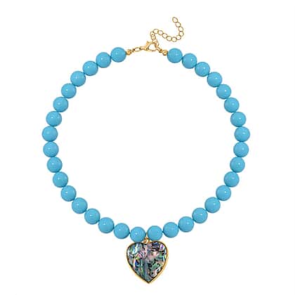 Sleeping Beauty Turquoise Colour Shell Pearl & Abalone Shell Heart Necklace (Size - 18 - 2 Ext) with Lobster Clasp 395.00 Ct.