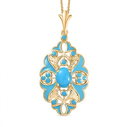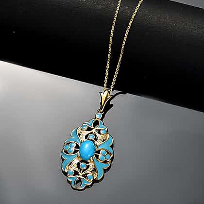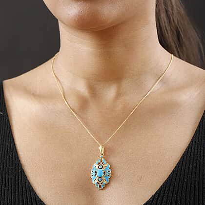 Sleeping Beauty Turquoise Pendant with Chain (Size 20) in 18K Vermeil Yellow Gold Plated Sterling Silver 1.16 Ct.
