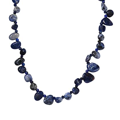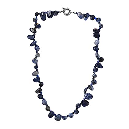 Sodalite, Lapis Lazuli Necklace (Size - 20) With Senorita Clasp in Pure White Platinum Overlay, 152.350 Ct.