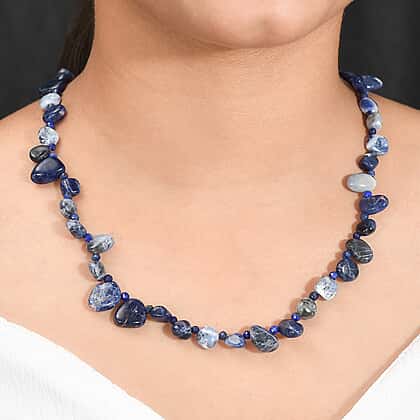 - Necklace studded with fancy free cut Sodalite and Round Lapis Lazuli