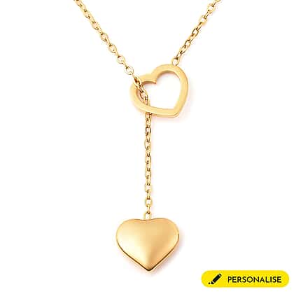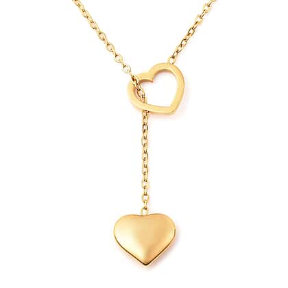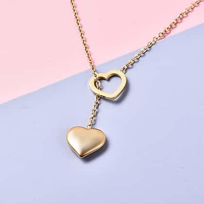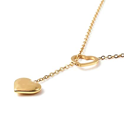 Solid and Hollow Heart Charm Slider Necklace (Size 17 with 2 inch Extender) in Yellow Gold Tone Stainless Steel
