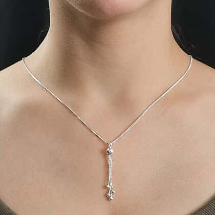 Sterling Silver Beaded Tassle Necklace (Size - 20) with Lobster Clasp