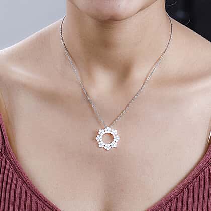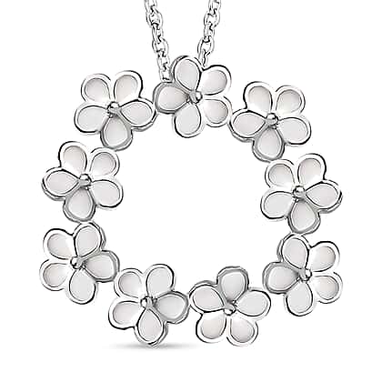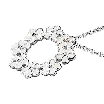 Sterling Silver Floral Pendant with Stainless Steel Chain (Size 20)
