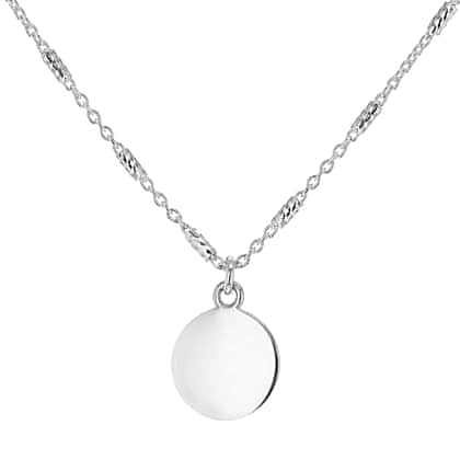 This lovely necklace features a delicate and intricate bead-and-trace chain that sparkles with diamond-cut detailing. The 9.5mm disc pendant adds a touch of sophistication to the piece, making it perfect for both casual and formal occasions. The necklace is available in two adjustable sizes, 41cm/16'' and 46cm/18'', to fit any neckline or preference.