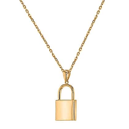 Showcasing a unique padlock pendant crafted from high-quality sterling silver and coated with lustrous yellow gold. The padlock design adds a touch of sophistication and elegance to any outfit, while the adjustable chain allows for a comfortable and customizable fit. With a length of 45cm to 50cm, it's the perfect length for a variety of necklines.