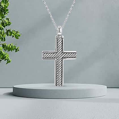 - Features a cross pendant with a twisted design on the frame for a modern look