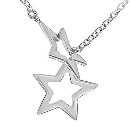 Layer your neckline with this simple and classic linked stars necklace. This necklace is 18 inches long and crafted from sterling silver with a fine finish to give it lustre and shine. It features two cut-out stars interlinked with each other for a unique look. Made from sterling silver with a durable clasp to hold the piece, you can wear it all day for a unique look.