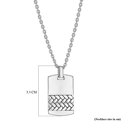 Sterling Silver 17mm x 33mm Herringbone-Patterned Dog Tag Pendant on Adjustable Chain 20 Inch to 22 Inch