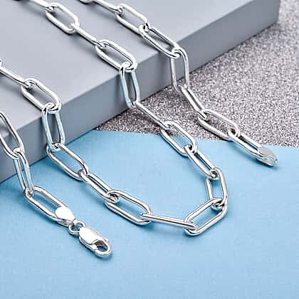 Style yourself up with the contemporary design of this sterling silver paper clip necklace that can be worn by itself or with your favourite silver charm. Forged in 14.27 grams of fine sterling silver, the Size 23.5 necklace is made up of elongated links that look like sleek paper clips. The necklace comes with a convenient fish hook clasp.
