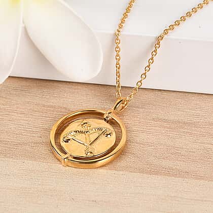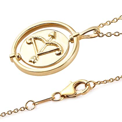 Sunday Child 14K Gold Overlay Sterling Silver Sagittarius Zodiac Sign Pendant with Chain (Size 20), Silver Wt. 6.35 Gms
