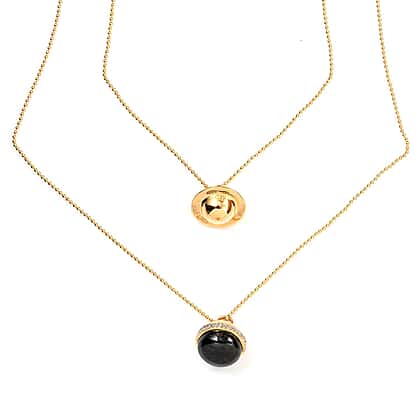 Sundays Child - Black Jade and Natural Zircon Necklace (Size 52-4 inch Ext.) in 14K Gold Overlay Sterling Silver 30.00 Ct, Silver Wt. 16 Gms