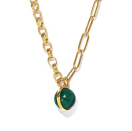 Sundays Child - Malachite Necklace (Size - 20) in 14K Gold Overlay Sterling Silver 6.53 Ct, Silver Wt. 14.99 Gms